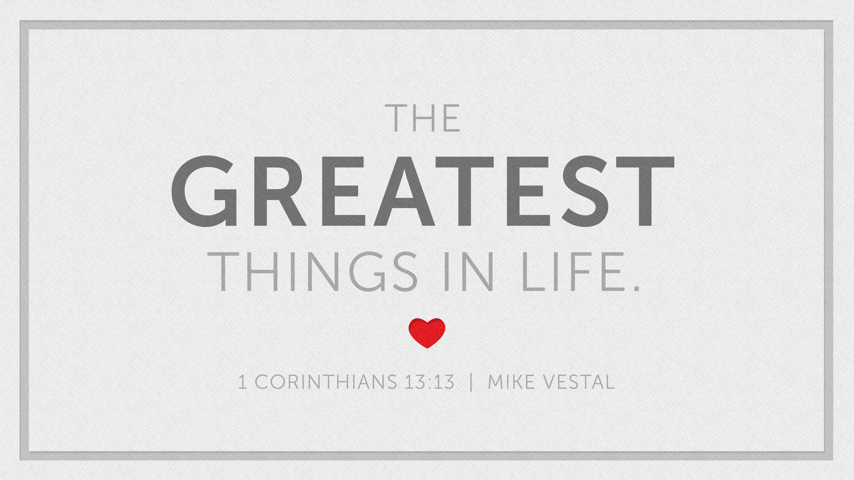 The Greatest Things in Life